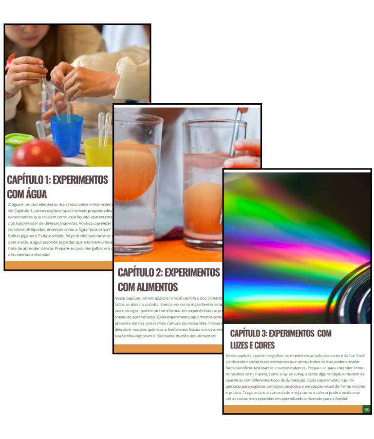 Você receberá 30 Experimentos Científicos para crianças e adolescentes, testados e comprovados pela nossa Equipe.
